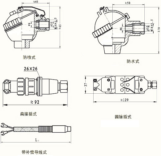 分度代號(hào)溫度范圍℃精度等級(jí)安裝固定裝置WZPK-133Pt100-200-+500A級(jí)或b級(jí)無(wú)固定裝置wzpk-134 wzpk-135 wzpk-136 wzpk-138 wzpk2- 135 wzpk2- 136 wzpk2- 138 wzpk-233固定螺紋件wzpk-134 k-238 wzpk2- 234 wzpk2- 235 wzpk2- 236 wzpk-238 wzpk-333可動(dòng)鎖緊螺釘wzpk-335 wzpk-336 wzpk2- 335 wzpk2- 336 wzpk2- 338 wzpk-433固定鎖緊凸緣wzpk wzpk-438 wzpk2- 435 wzpk2- 436 wzpk2- 438 wzpk-533可動(dòng)咬合凸緣wzpk-534 wzpk-535 wzpk-536 wzpk-538 wzpk2- 534 wzpk2- 535 wzpk2- 536 wzpk2- 5382 )防噴流式