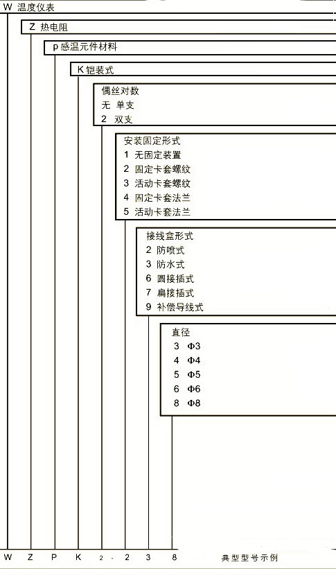 產(chǎn)品型號(hào)溫度范圍℃精度等級(jí)安裝固定裝置WZPK-123Pt100-200-+500A級(jí)或b級(jí)無(wú)固定裝置wzpk-124 wzpk-126 wzpk-128 wzpk2- 125 wzpk2- 126 wzpk-223固定卡入螺釘wzpk-224 wzpk-225 wzpk 28 wzpk2- 224 wzpk2- 225 wzpk2- 226 wzpk2- 228 wzpk-323可動(dòng)鎖緊螺釘wzpk-324 wzpk-326 wzpk-328 wzpk2- 325 wzpk2- 326 wzpk2- 328 wzpk-423固定鎖緊凸緣wz PK PK-428 wzpk2- 424 wzpk2- 425 wzpk2- 426 wzpk-428 wzpk-523可動(dòng)咬合凸緣wzpk-524 wzpk-525 wz PK-526 wzpk-528 wzpk2- 524 wzpk2- 525 wz PK2- 526 wzpk2- 526