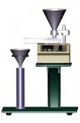 在無振動條件下測量粉體體積密度的裝置。 裝置由送料器、漏斗、漏斗、量筒構(gòu)成。 調(diào)整漏斗架,使漏斗下端與量筒上端的距離為10mm,漏斗的中心與量筒的中心重合。 進料器以20g/m...